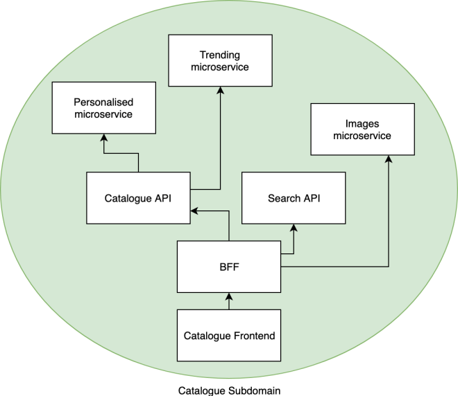 For instance, Playback and Sports Data are components living inside the catalogue micro-frontends, the complexity of those 2 subdomains lead us to assign a team dedicated to each of those subdomains.
