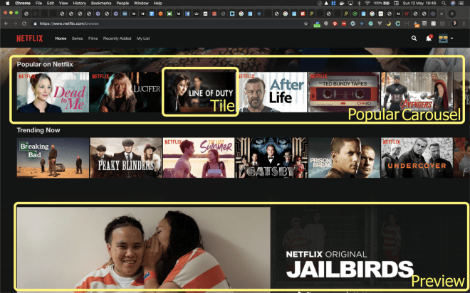 In this screenshot, we can identify some components, those might be linked to some microservices like the personalisation service, the catalogue per country, the most popular contents and so on.
